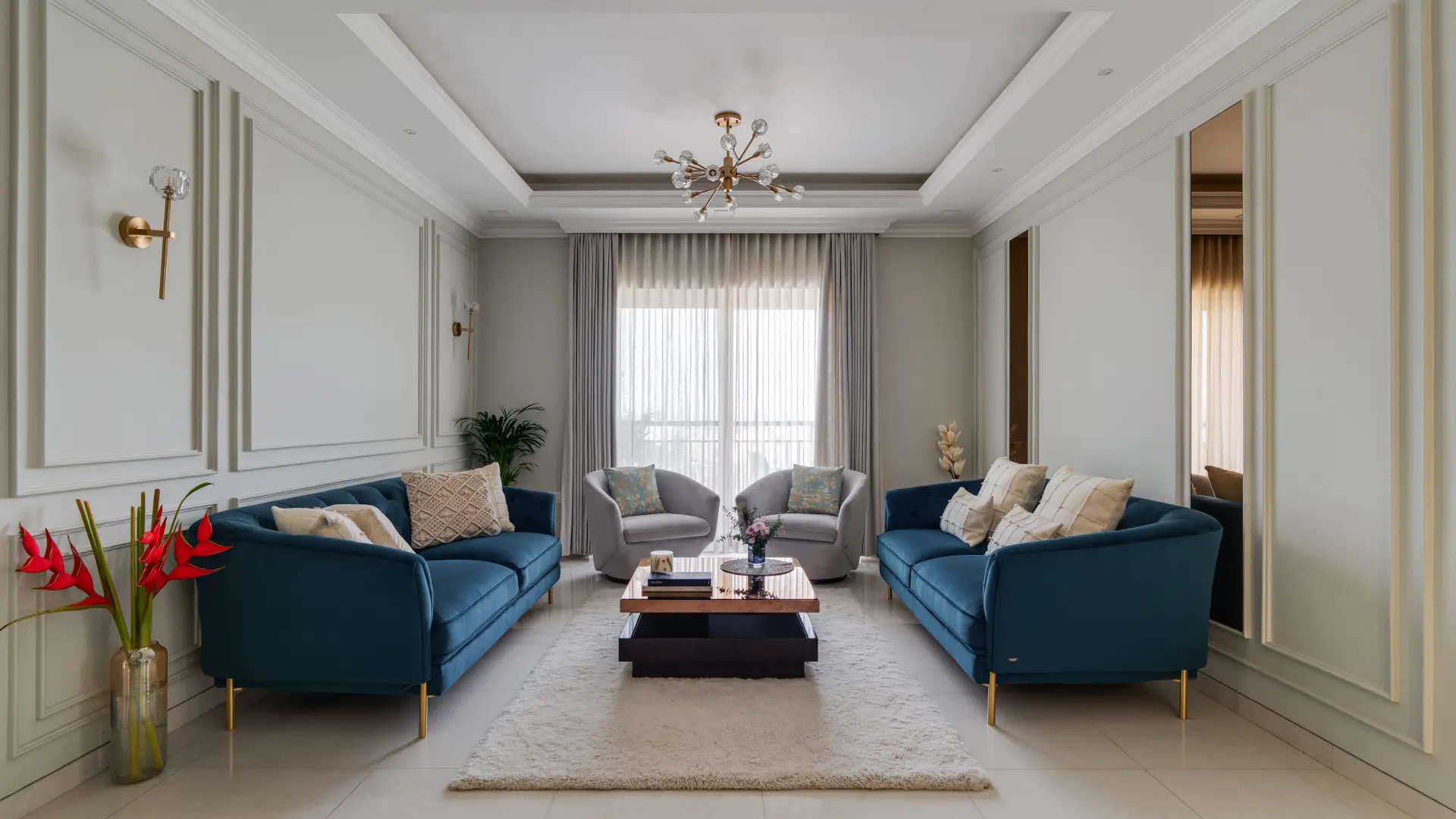 De Panache designs residential interiors and apartment interiors. From 3 BHKs to huge villas, we can work on all types of residential spaces. We offer both interior designing and interior decorating services.